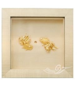 Mượn hình ảnh đầy ý nghĩa đó, các nghệ nhân đã tạo ra những bức tranh phong thuỷ đôi cá chép mạ vàng tinh xảo và đẳng cấp để làm vật phẩm trang trí và quà tặng. Hình ảnh hai chú cá uốn lượn mềm mại, quấn quýt lấy nhau như thể hiện sự hạnh phúc vững bền của gia đình. Đồng thời, tranh còn giúp chủ sở hữu có thể thu hút vượng khí dồi dào, để cuộc sống vẹn toàn và sung túc.